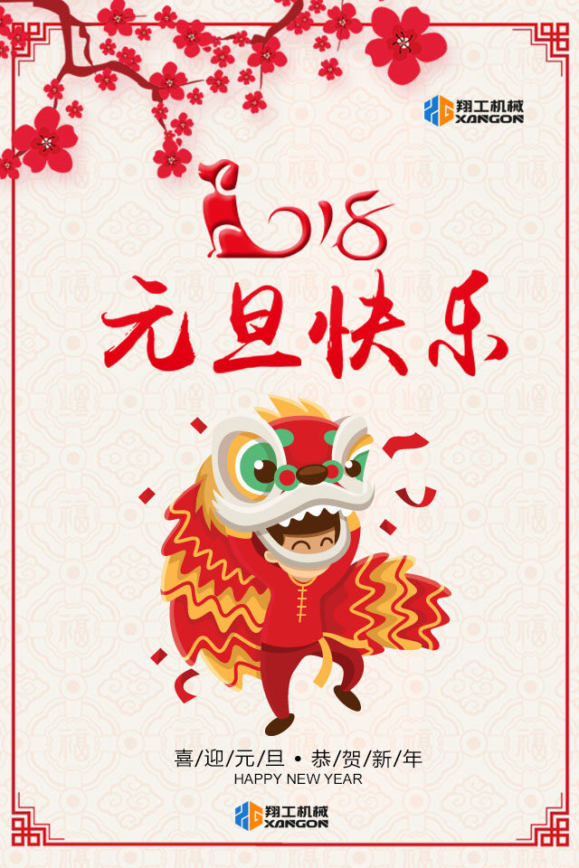 在此,山東翔工機(jī)械祝您元旦快樂,闔家幸福!愿您狗年大吉大利,萬事如意!2018!我們攜手并進(jìn),共贏狗年!再創(chuàng)新輝煌