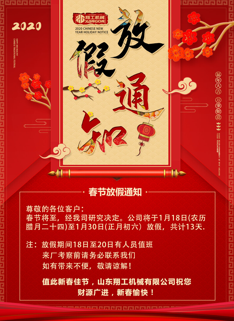 關(guān)于翔工機(jī)械新年放假通知