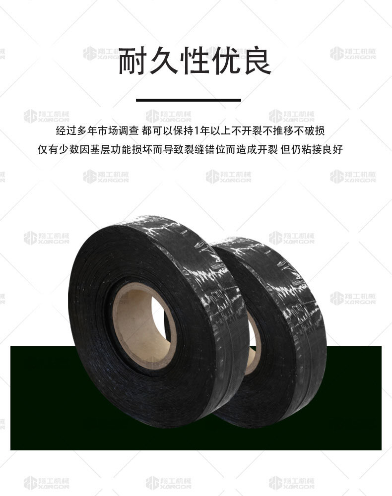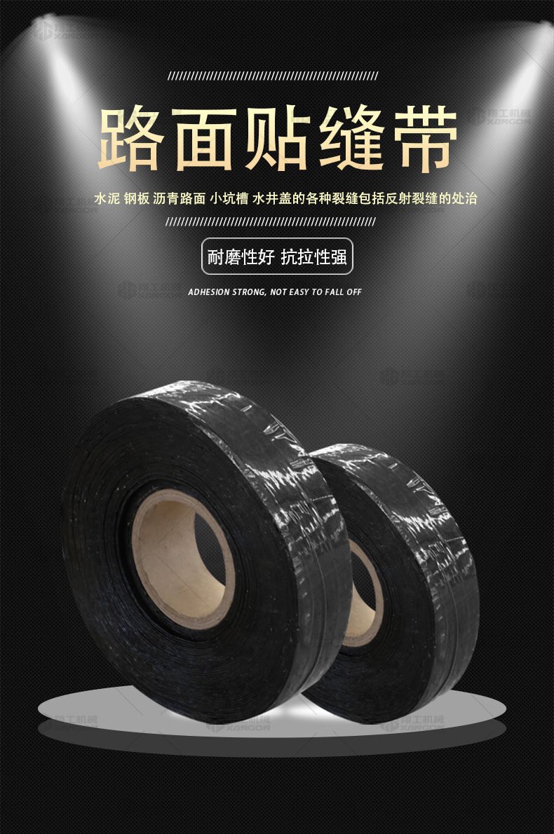 防裂貼(又稱抗裂貼)是由瀝青基的高分子聚合物、抗拉胎基、耐高溫并與瀝青相容的織物復合而成。將其貼于產生裂縫或剝落的瀝青混泥土面,能減少并阻隔其作用于路面的溫縮應力,因此也減少了裂縫反射穿過面層的趨勢,鋪設與路面因其將基層與上部磨耗層隔離開來,從而使上面層免受多向位移及剪切應力的影響,用于公路、橋梁、機場等。