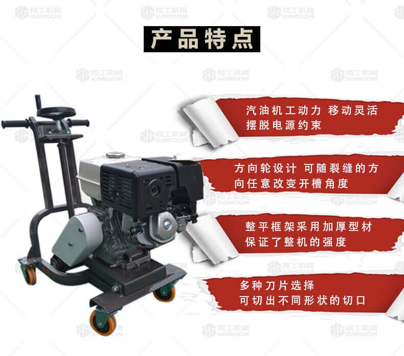 產(chǎn)品簡(jiǎn)介: 適用于瀝青路面灌縫修補(bǔ)的裂縫打?qū)?。 產(chǎn)品特點(diǎn): 汽油機(jī)工動(dòng)力,移動(dòng)靈活,擺脫電源約束;方向輪設(shè)計(jì),可隨裂縫的方向任意改變開槽角度;整平框架采用加厚型材,保證了整機(jī)的強(qiáng)度;多種刀片選擇,可切出不同形狀的切口。