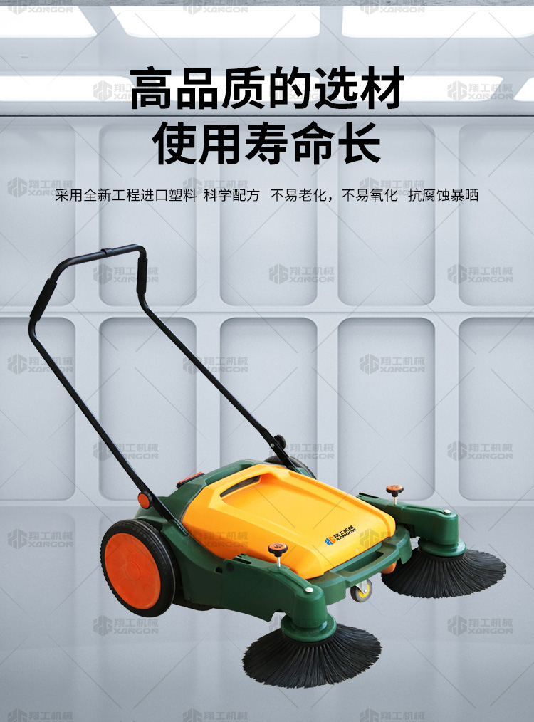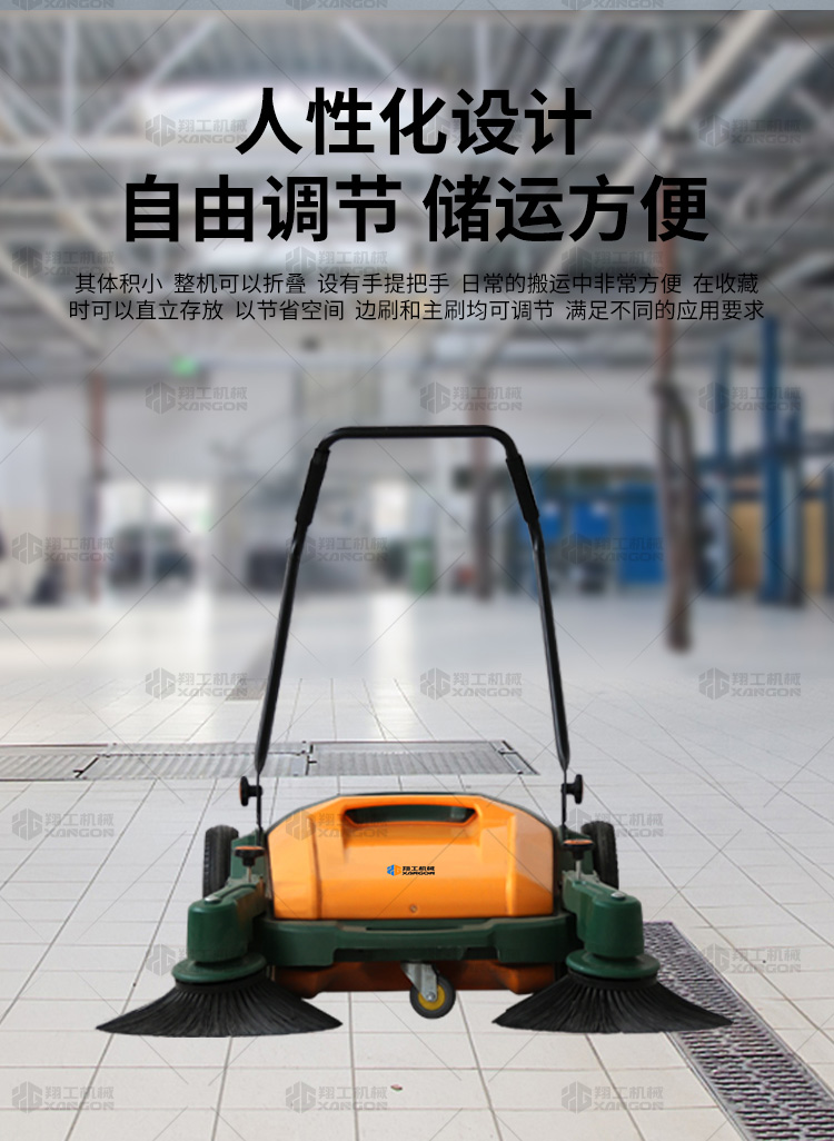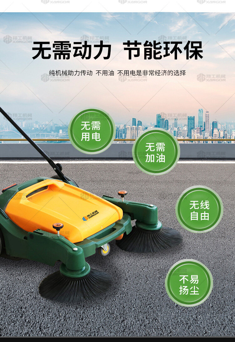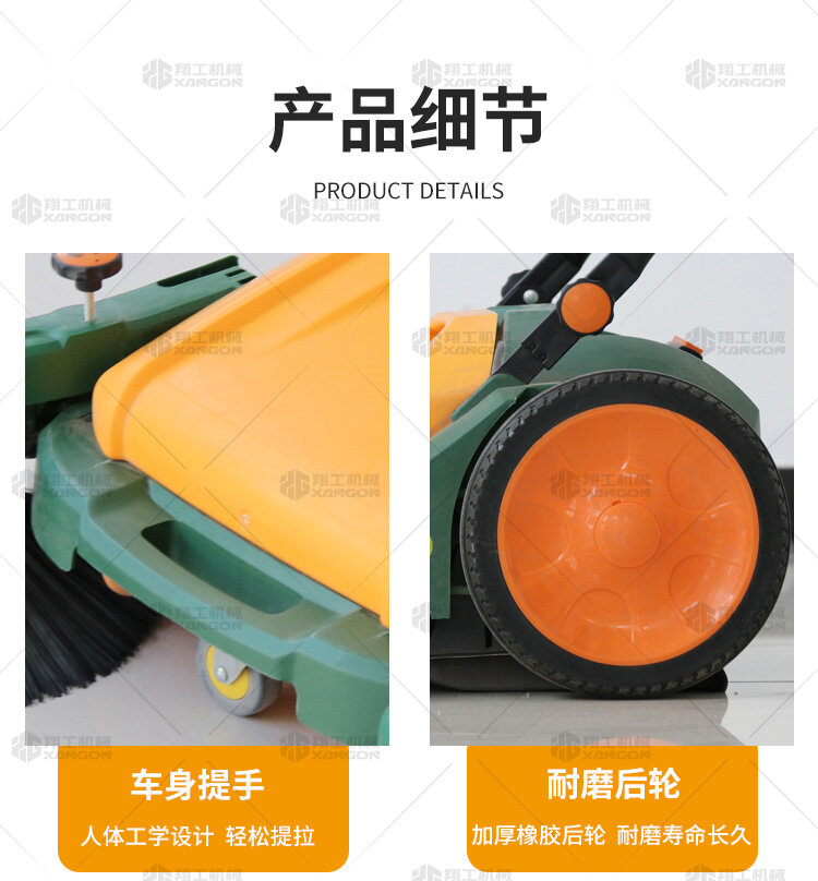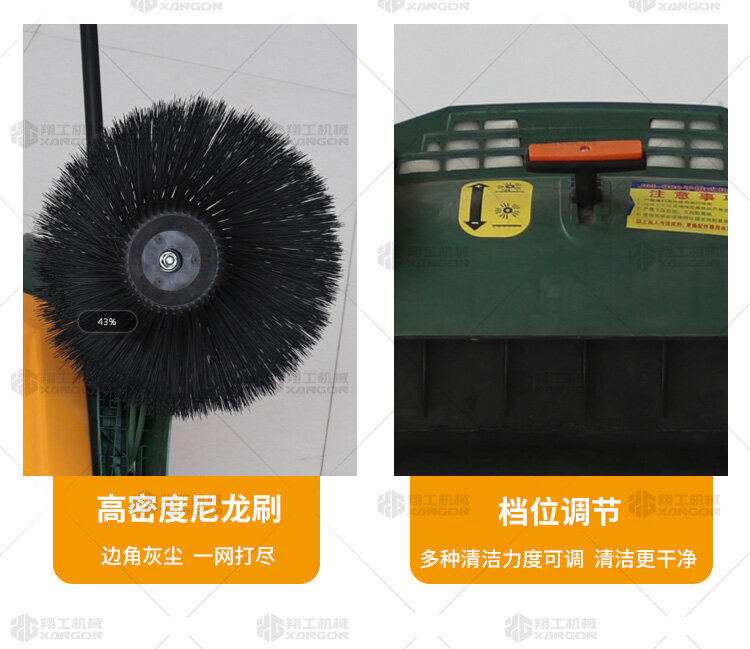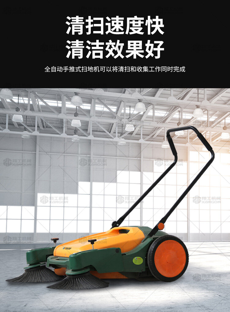 X920型全自動(dòng)手推式掃地機(jī)能清潔房屋周邊范圍:包括小路,公路,車道和院子,能比普通的掃把和簸箕節(jié)省5倍的時(shí)間,清掃時(shí)垃圾被迅速的收集到塵箱,簡單、快速、干凈。