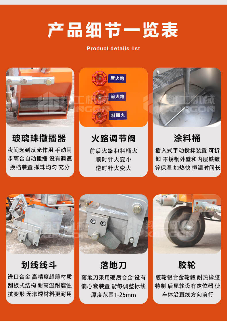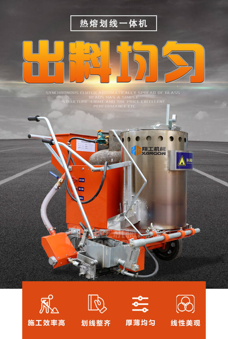 小型路面熱熔劃線一體機顧名思義是集熔料與劃線于一體,可自行完成各類線型的施劃的路面機械。傳統(tǒng)的熱熔劃線施工由于熱熔劃線機不具備高能的熔料的能力,需要熱熔釜的配合,要先將熱熔釜搭載在貨車上或者皮卡車上使用,受建筑層高和施工場地面積的局限,這款熱熔劃線一體機,道路劃線機,產品無損路面,成本低,效益高,劃線美觀,平行,使用壽命長,價位也非常合理。