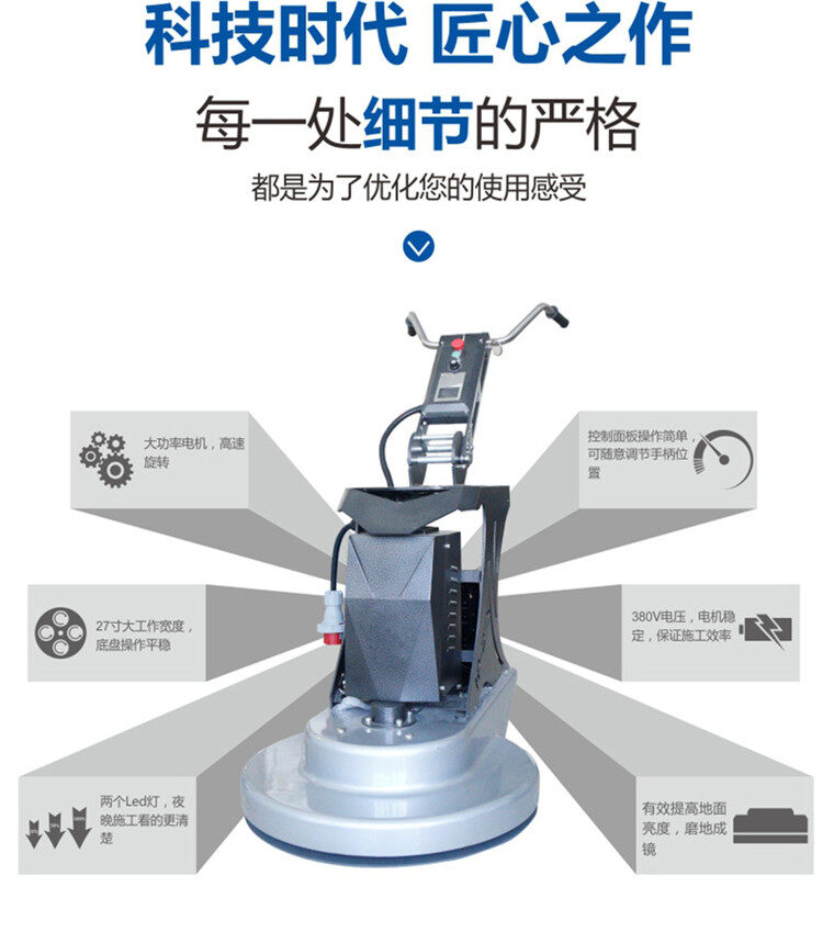 拋光機是為了讓地面表面有光澤,需要先研磨后才可以拋光。拋光分為粗拋和精拋,這時候可以使用拋光機,配合拋光墊,提高地面的光澤度。高速地坪拋光機讓你輕松完成地坪拋光工作,提高地坪亮度。拋光機是為了讓地面表面有光澤,需要先研磨后才可以拋光。拋光分為粗拋和精拋,這時候可以使用拋光機,配合拋光墊,提高地面的光澤度。高速地坪拋光機讓你輕松完成地坪拋光工作,提高地坪亮度。