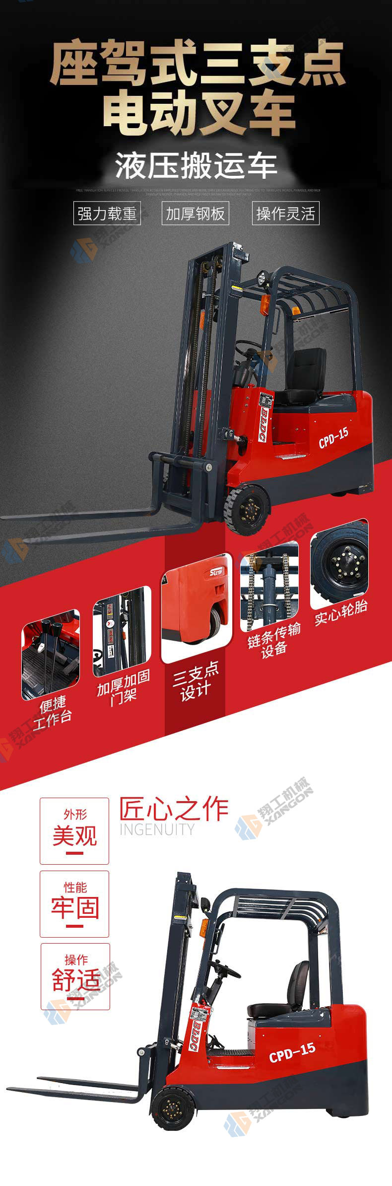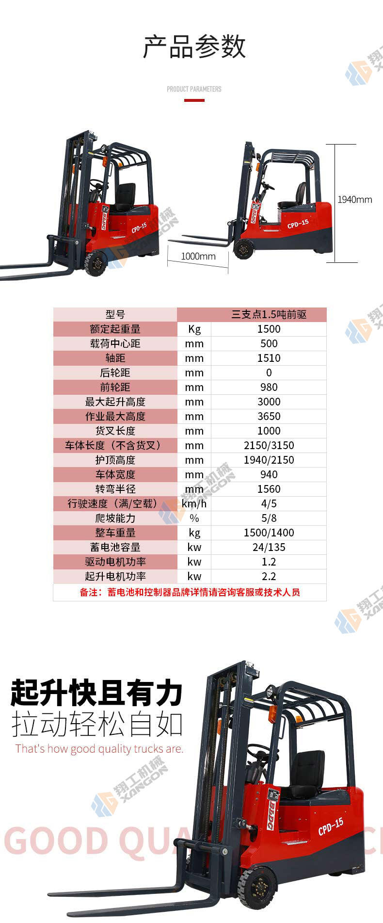 三支點CPD1.5噸前驅(qū)電動升降液壓電動叉車