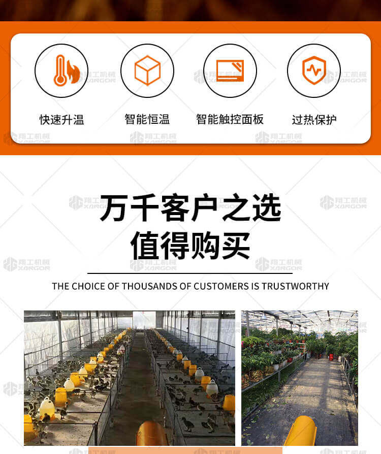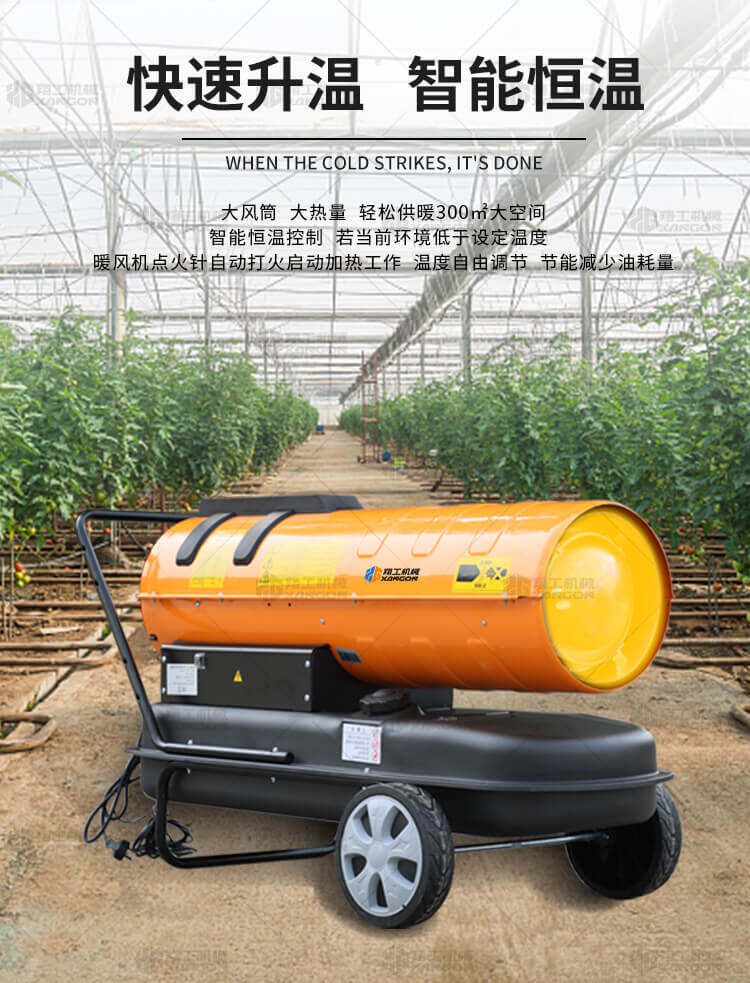 燃油暖風(fēng)機(jī)可對(duì)禽畜取暖,育雛取暖,花卉養(yǎng)殖,大棚蔬菜瓜 果,商場(chǎng),車(chē)間,展會(huì)進(jìn)行取暖。