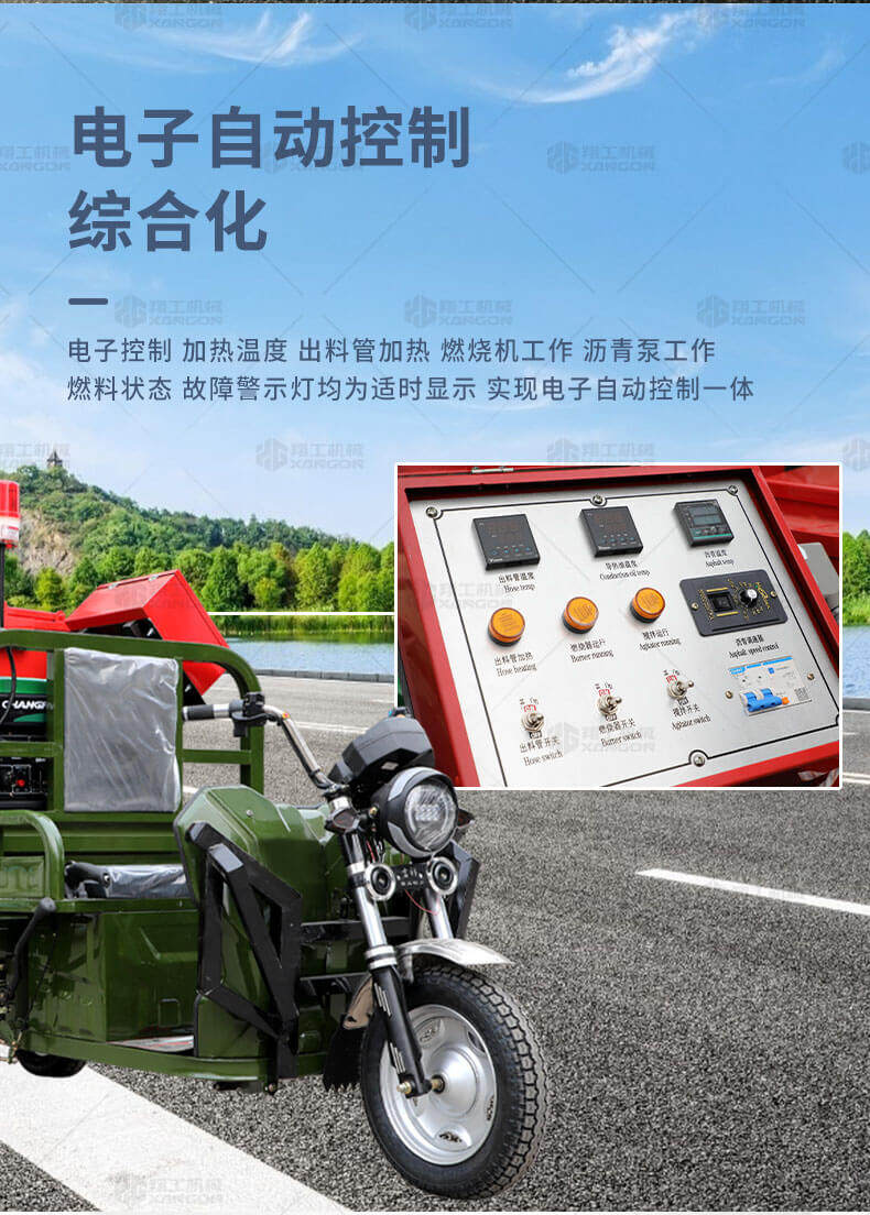 主要用于瀝青或水泥路面裂縫瀝青灌縫。汽油灌縫機(jī)主要有手推式和自行式手持灌縫管操作,采用進(jìn)口柴油燃燒器加熱。在工作時(shí)首先在料箱內(nèi)加入瀝青或灌縫膠,啟動(dòng)發(fā)電機(jī)供電,依次間斷打開導(dǎo)熱油泵開關(guān),燃燒器開關(guān),出料管加熱開關(guān);調(diào)整自動(dòng)溫控系統(tǒng)與材料的溫度相同,通過柴油燃燒器自動(dòng)加熱熔料箱內(nèi)導(dǎo)熱油開始升溫(拖式為強(qiáng)制循環(huán))使材料融化,溫度是通過自控系統(tǒng)來控制。溶料時(shí)間大約30-40分鐘左右。在材料融化、出料管溫度達(dá)到后可以進(jìn)行工作。手持灌縫管對(duì)正裂縫灌縫處理。瀝青泵的出料流量可調(diào)。在工作過程中隨時(shí)添加材料保證工作的連續(xù)性。