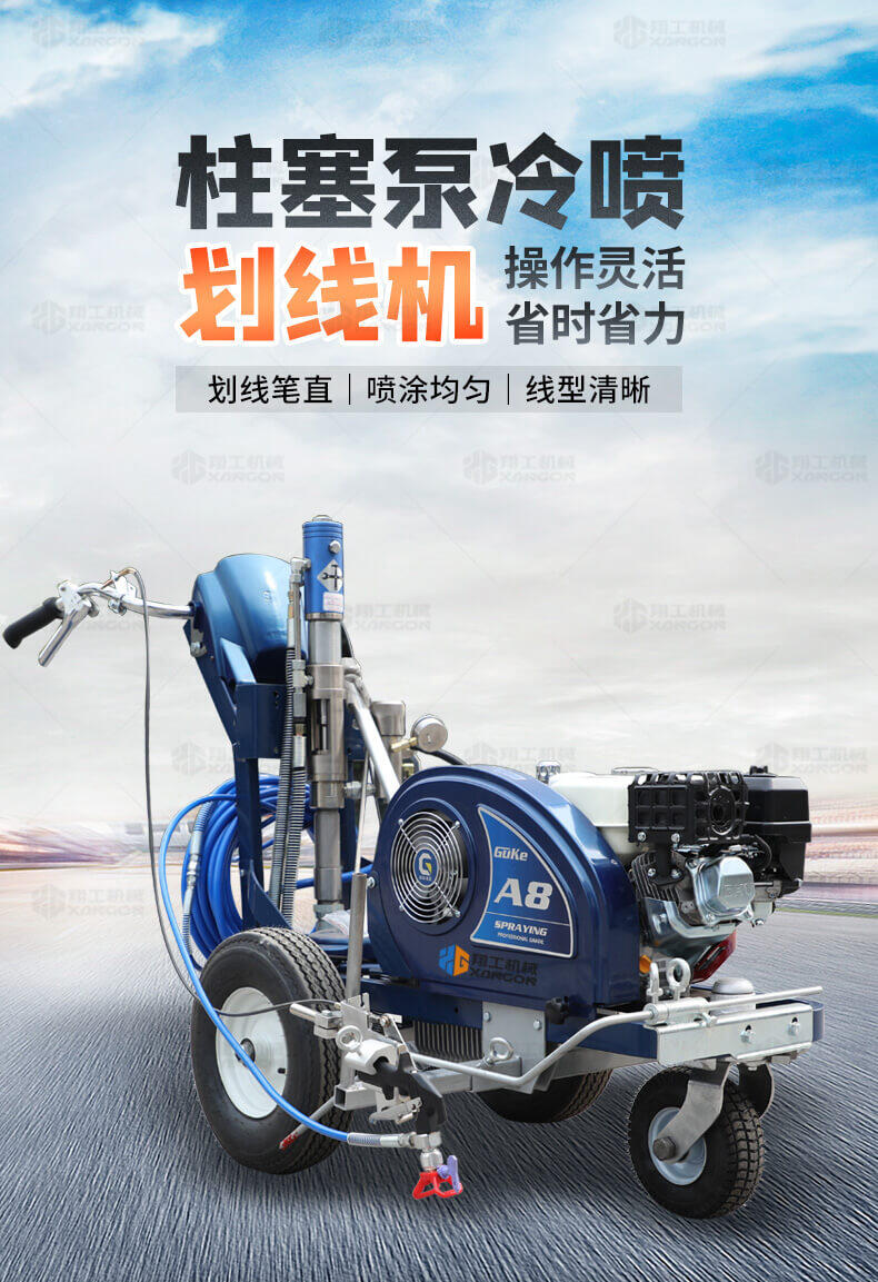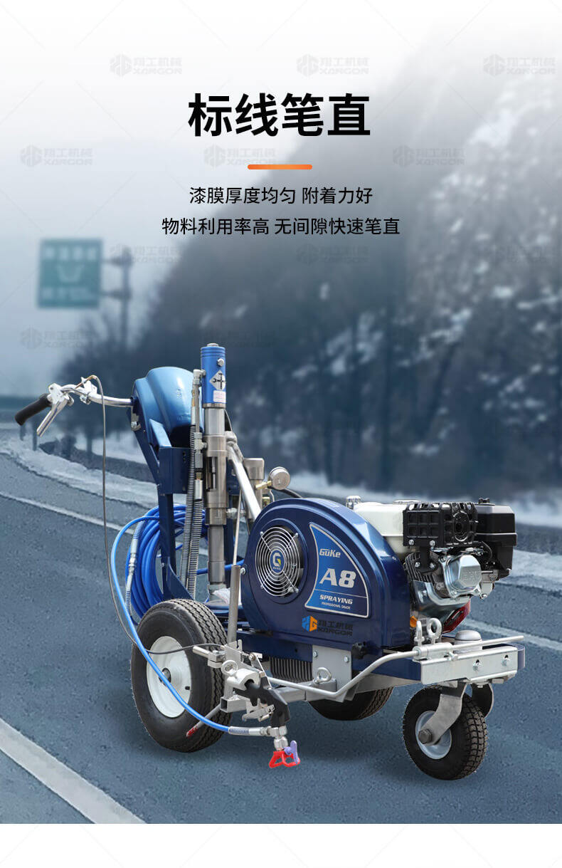 主要用于公路、市區(qū)、停車場(chǎng)、機(jī)場(chǎng)等涂劃直線、虛線、曲線、文字、箭頭等。具有劃線效果好、速度快、效率高、適用范圍廣、使用方便等優(yōu)點(diǎn)。