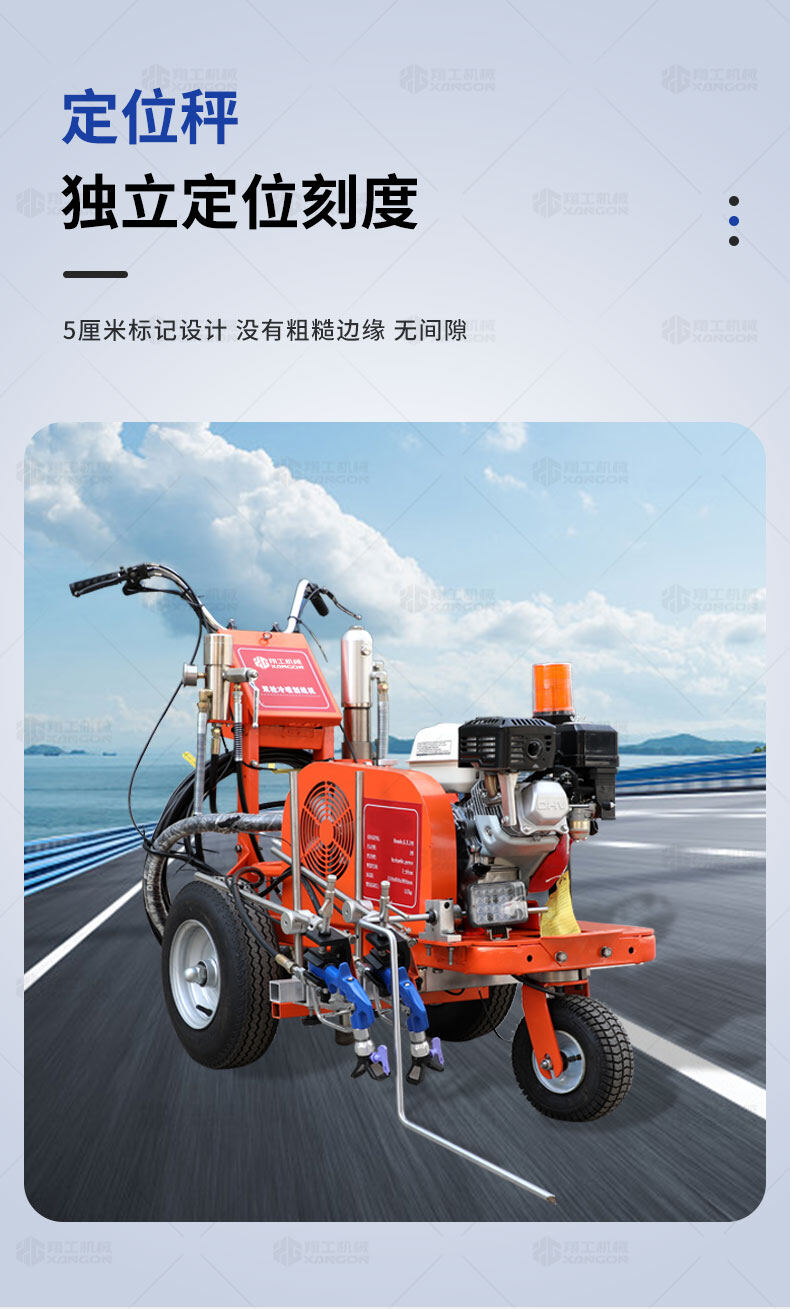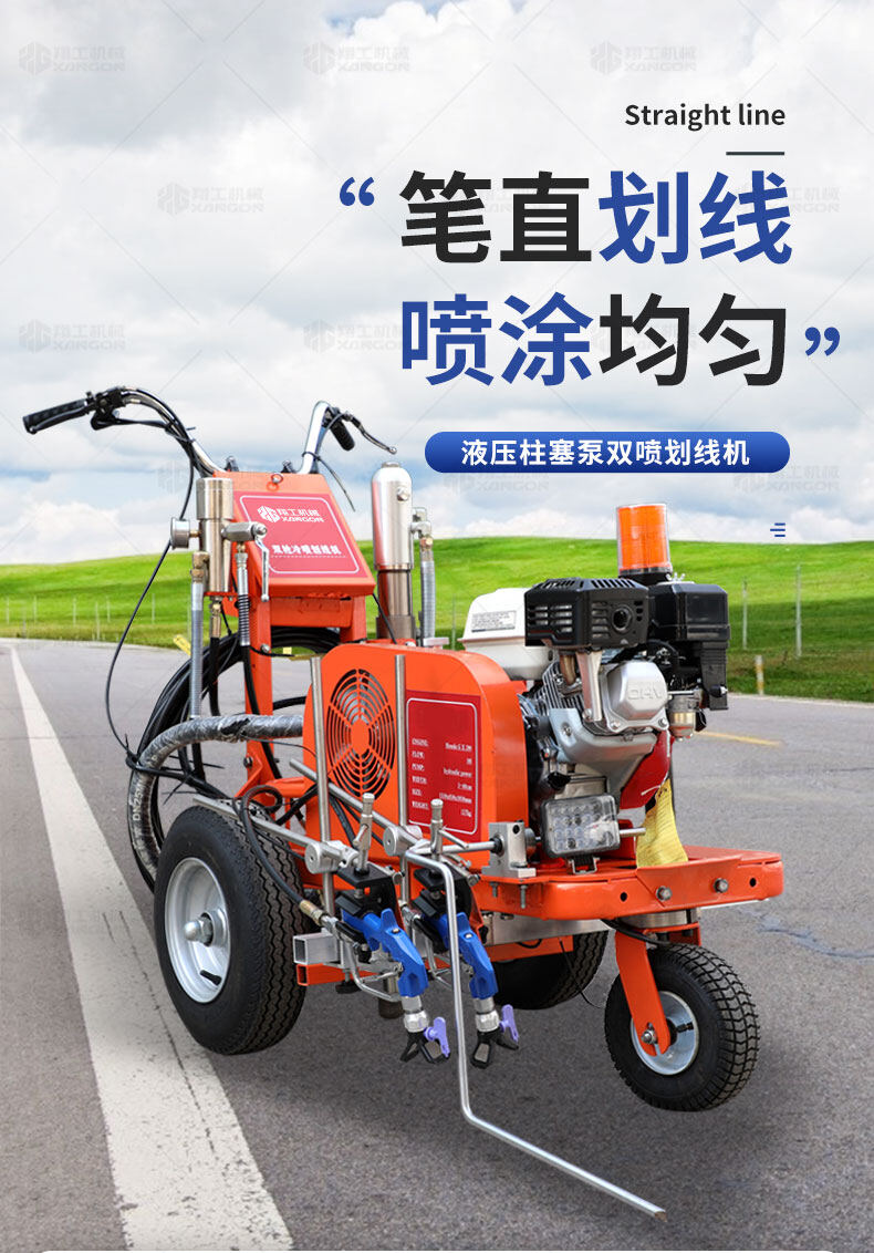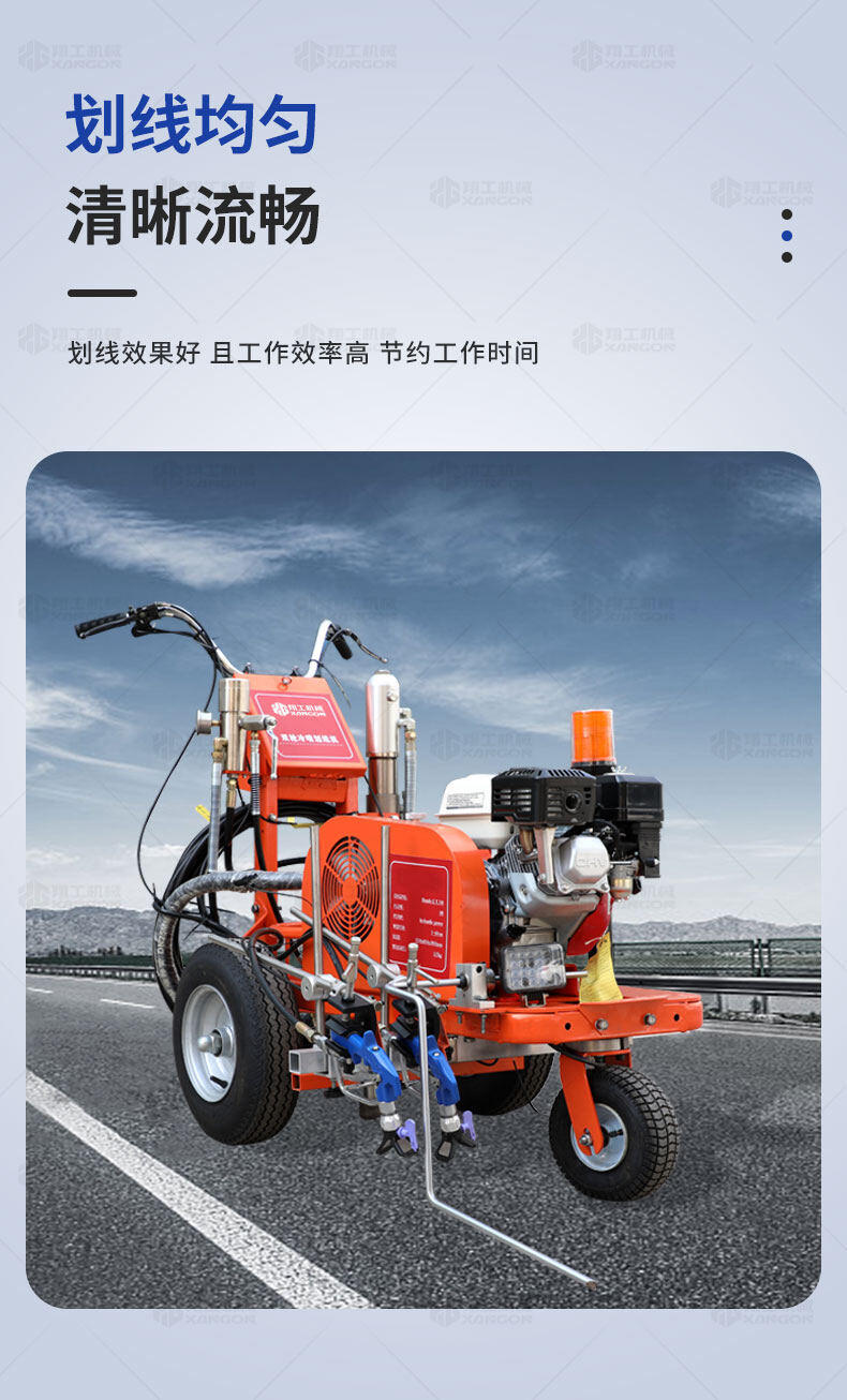 主要用于公路、市區(qū)、停車場(chǎng)、機(jī)場(chǎng)等涂劃直線、虛線、曲線、文字、箭頭等。具有劃線效果好、速度快、效率高、適用范圍廣、使用方便等優(yōu)點(diǎn)。