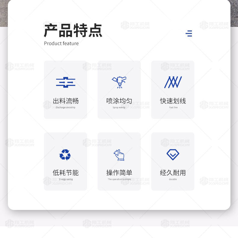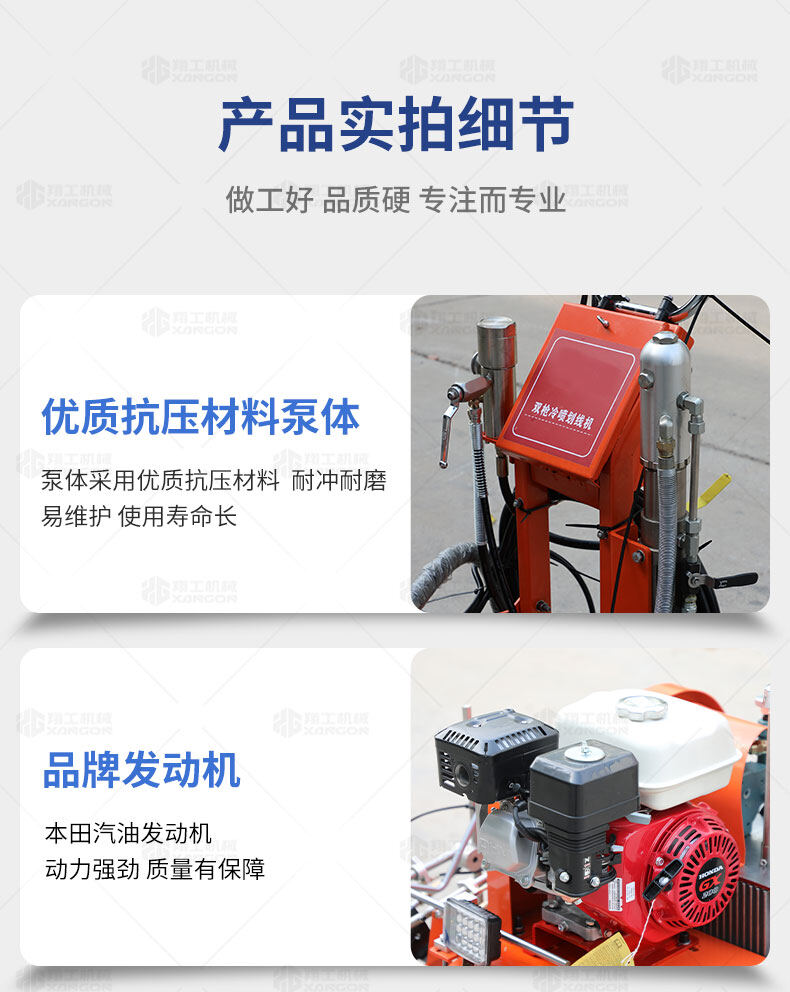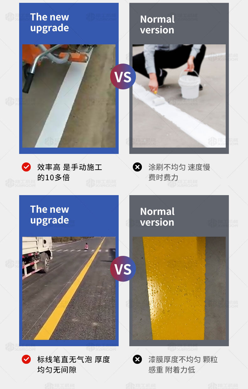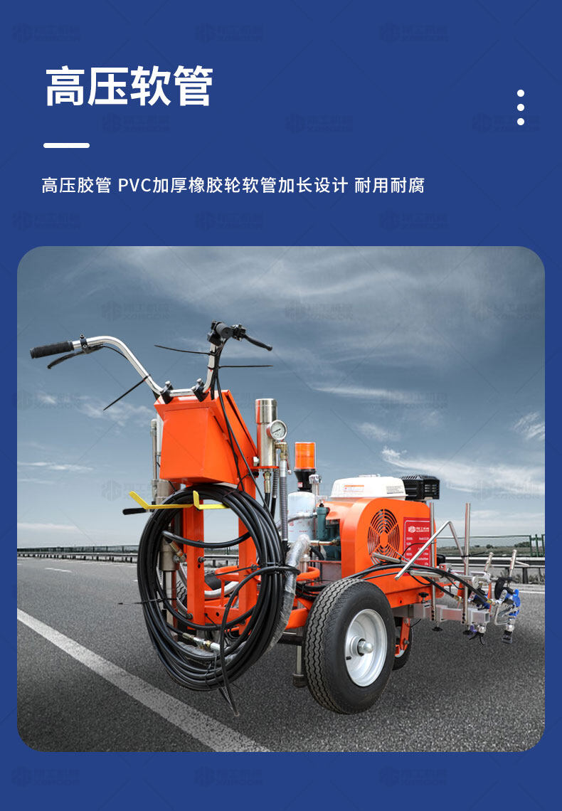 主要用于公路、市區(qū)、停車場(chǎng)、機(jī)場(chǎng)等涂劃直線、虛線、曲線、文字、箭頭等。具有劃線效果好、速度快、效率高、適用范圍廣、使用方便等優(yōu)點(diǎn)。