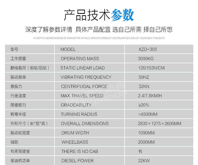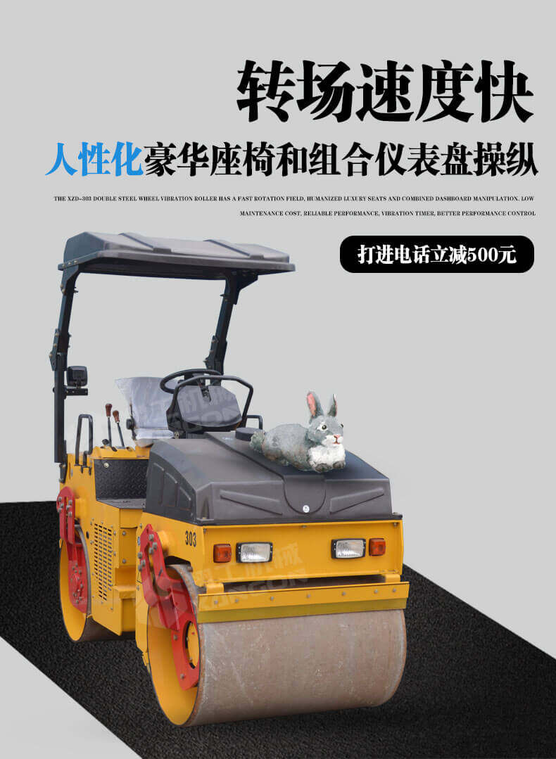 1,XZD-303雙鋼輪振動壓路機(jī)轉(zhuǎn)場速度快,人性化豪華座椅和組合儀表盤操縱。維修成本低,性能可靠,配置震動計(jì)時(shí)器,對工作績效更好地控制;