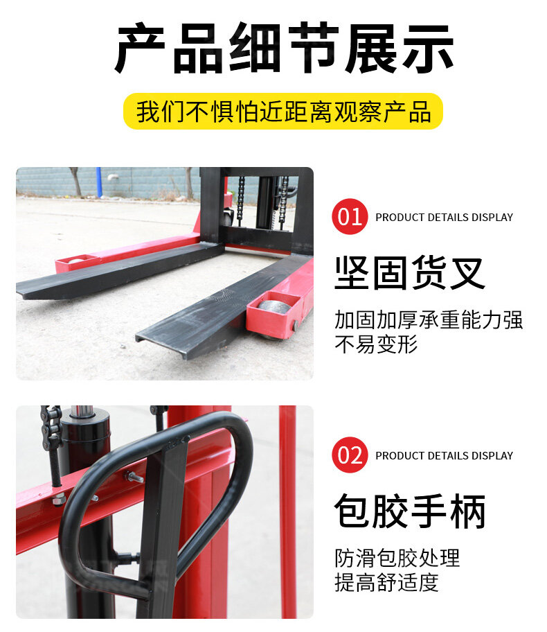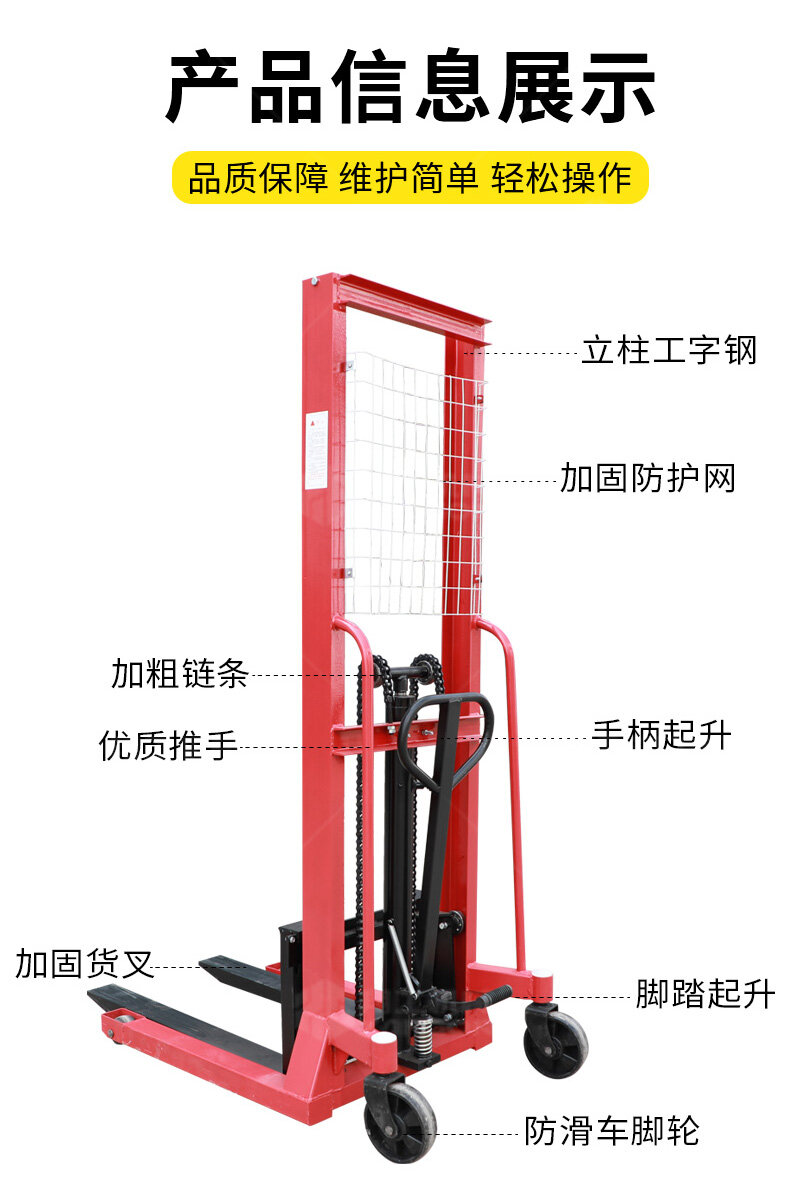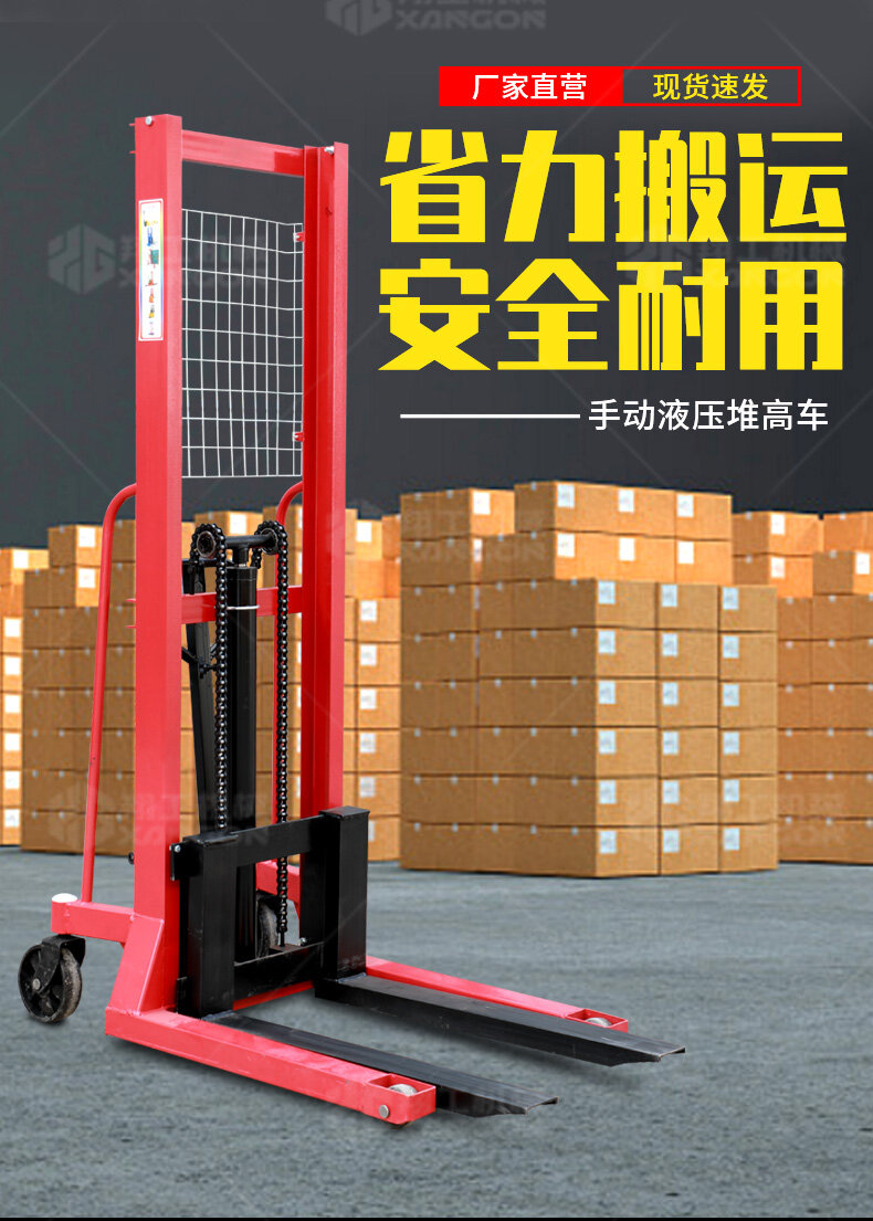 手推液壓堆高車滿足多場景需要工廠車間高架倉庫、商場超巿、港口車站、配送中心、物流中心等......