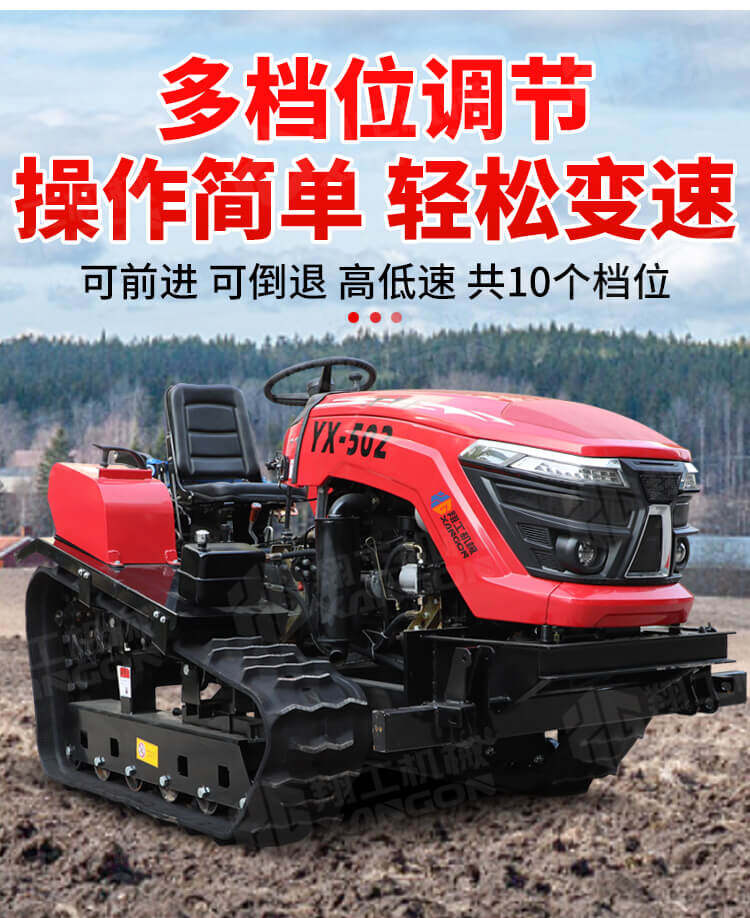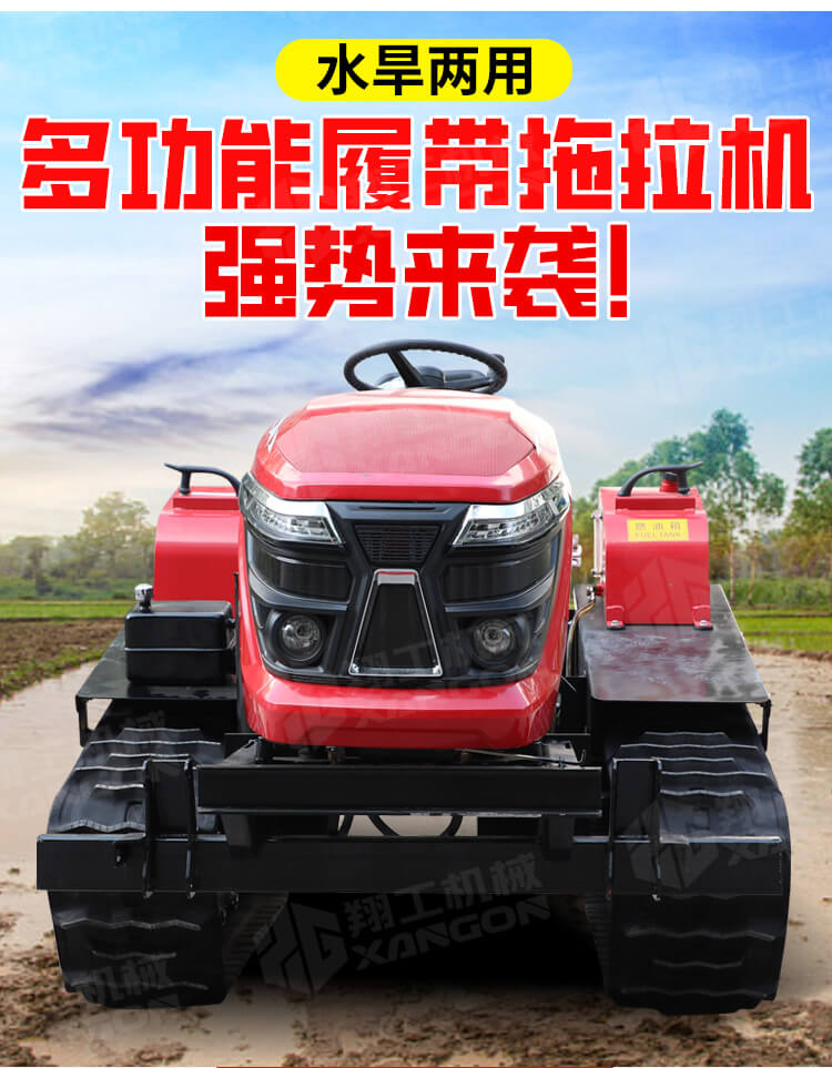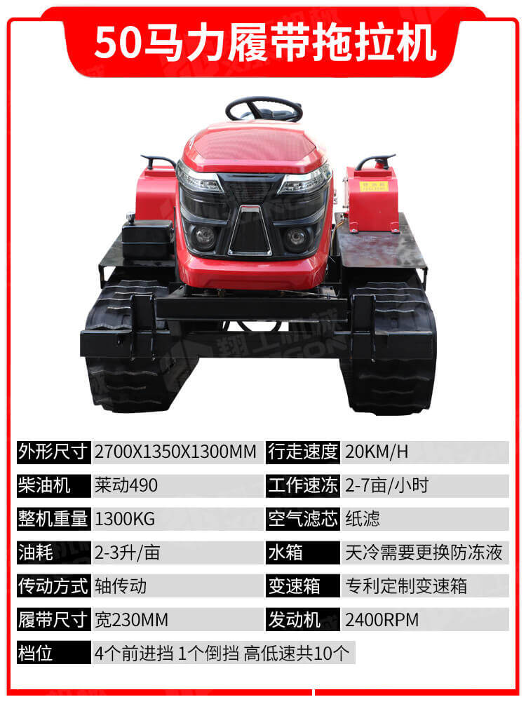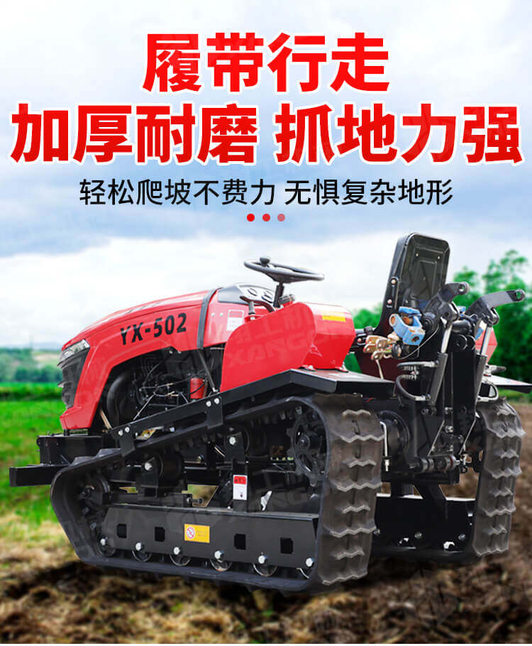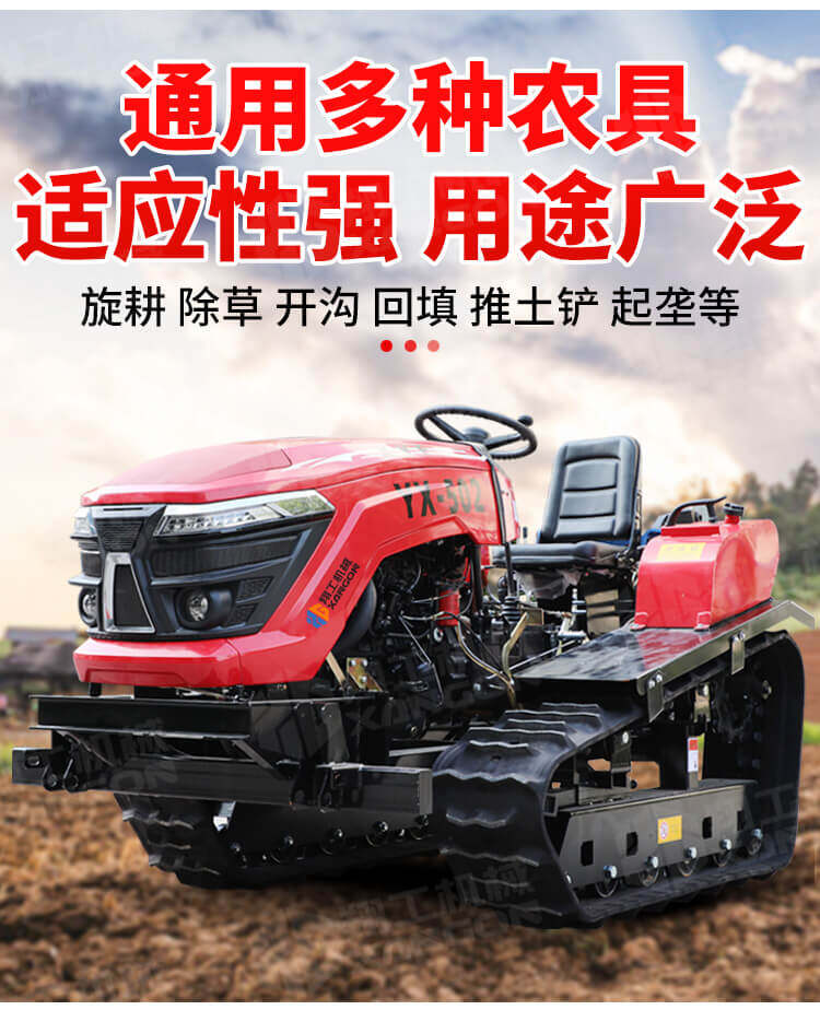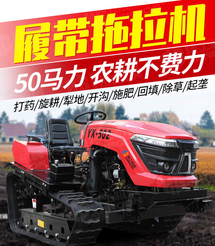 履帶拖拉機本機能完成耕、耙作業(yè),具有碎土能力強、耕后地表平坦等特點。采用寬耕幅、對稱懸掛使輪跡全部覆蓋,有省時、省力、作業(yè)質(zhì)量高成本低等特點。