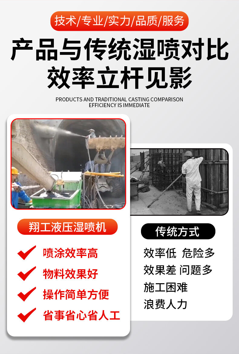 濕噴機噴漿量大,輕松泵送、回彈率低。