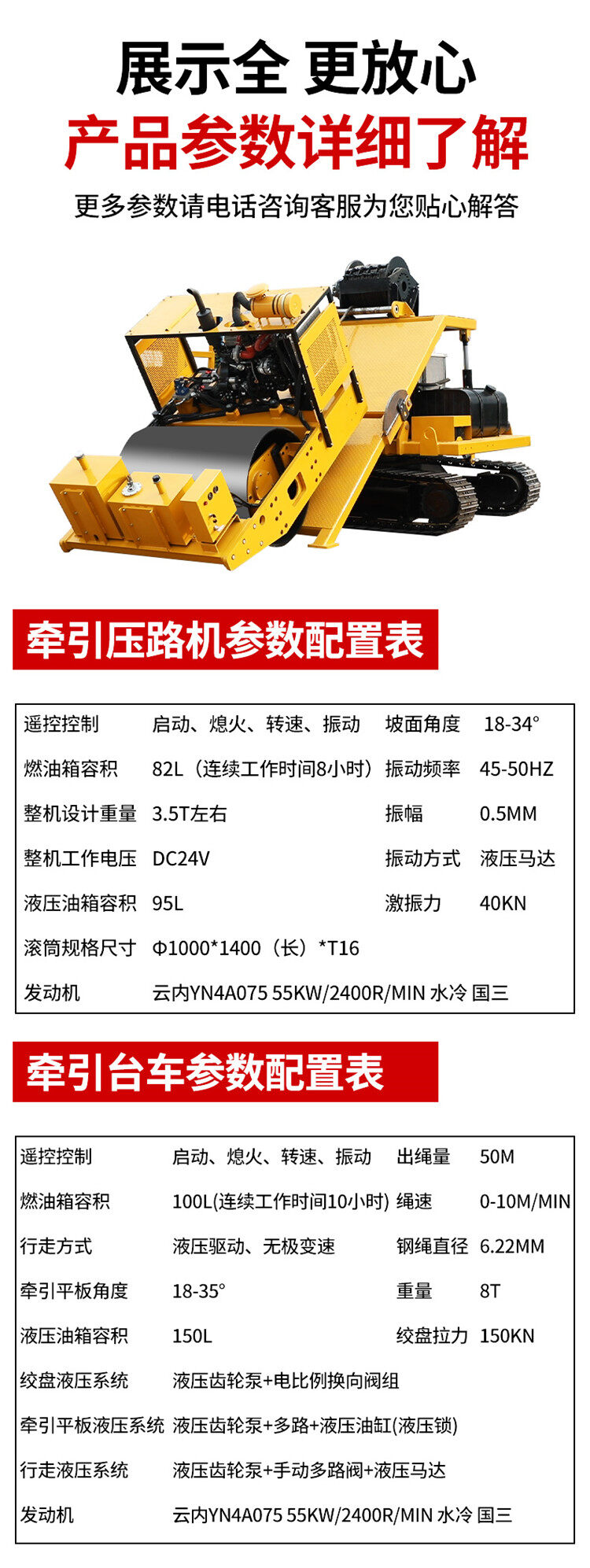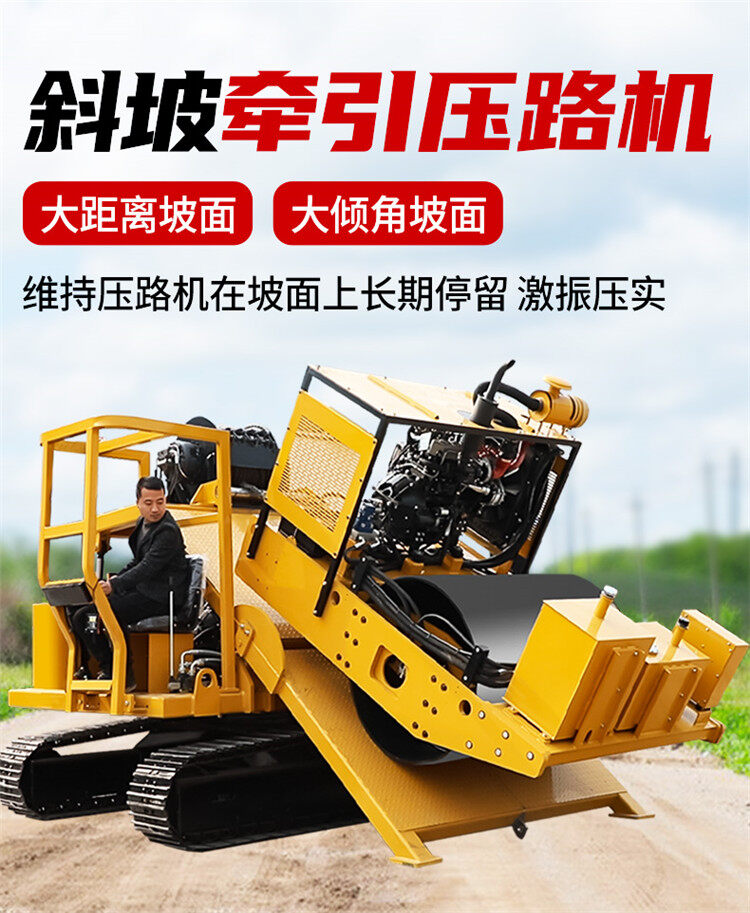 帶絞車斜坡壓路機是由壓路機和牽引絞車共同組成的協(xié)同工作的壓路機,使用于大距離,大傾角的坡面工作。