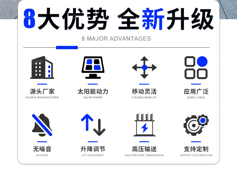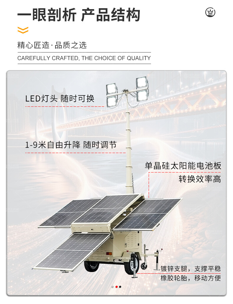 太陽能燈車采用高效光伏板與鋰電池組合,白天蓄電,夜間自動(dòng)照明,節(jié)能環(huán)保。配備高亮度LED燈,照射范圍廣,適用于道路施工、應(yīng)急搶險(xiǎn)、夜間作業(yè)等場景。移動(dòng)靈活,防水防塵,無需外接電源,續(xù)航持久。結(jié)構(gòu)堅(jiān)固,操作簡便,是戶外臨時(shí)照明的理想選擇,兼顧經(jīng)濟(jì)性與實(shí)用性。