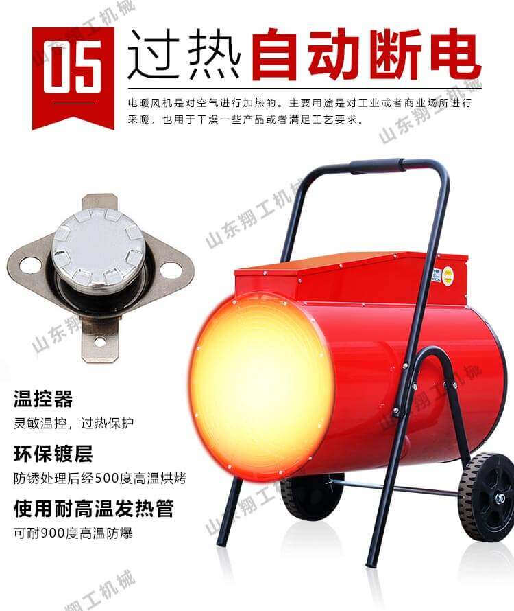 暖風機優(yōu)點: 1、純銅全封閉電機 2、防爆不銹管(不銹管發(fā)熱元件作熱源保證產(chǎn)品的可靠) 3、取暖溫度可自動調(diào)節(jié)(調(diào)節(jié)功率) 電暖風機是由通風機,電動機及散熱器組合而成的聯(lián)合機組。適用于空氣允許再循環(huán)的各種類型車間,當空氣中不含灰塵,易燃性的氣體時,可作為循環(huán)空氣采暖之用。